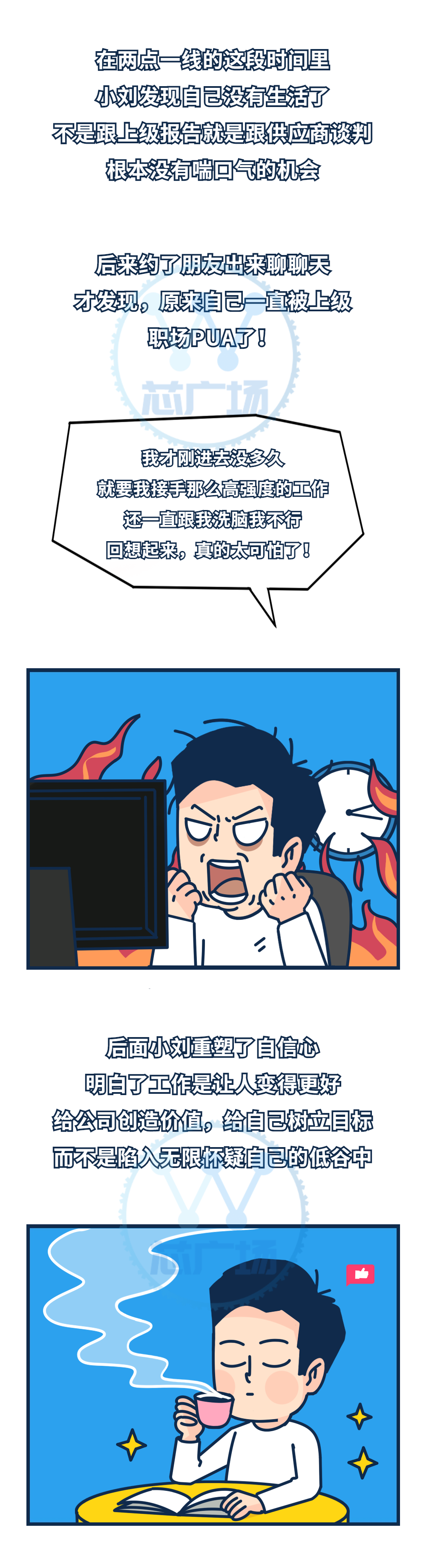 上述的小刘同学,是芯仔认识的一个采购客户朋友。因为最近网上对于职场PUA的讨论很是火热,于是说起这个话题时,小刘就跟芯仔分享了他个人的经历。