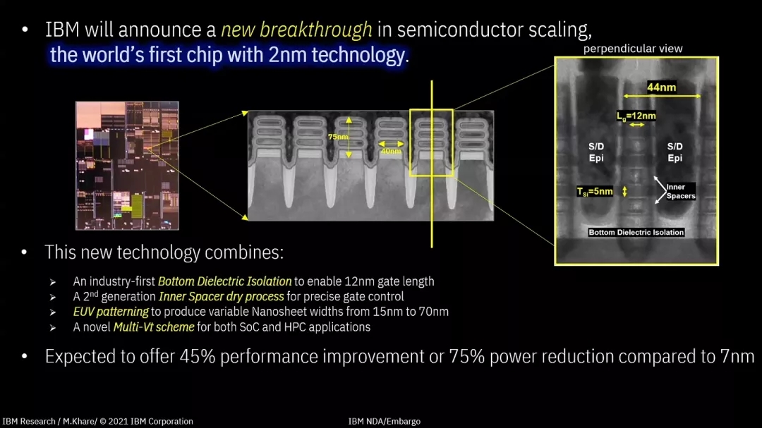 台积电、三星争分夺秒研发的3nm芯片工艺还没面世,2nm工艺的半导体芯片就横空出世了。北京时间5月6日,美国巨头IBM正式对外发布了全球首个2纳米芯片制造技术。