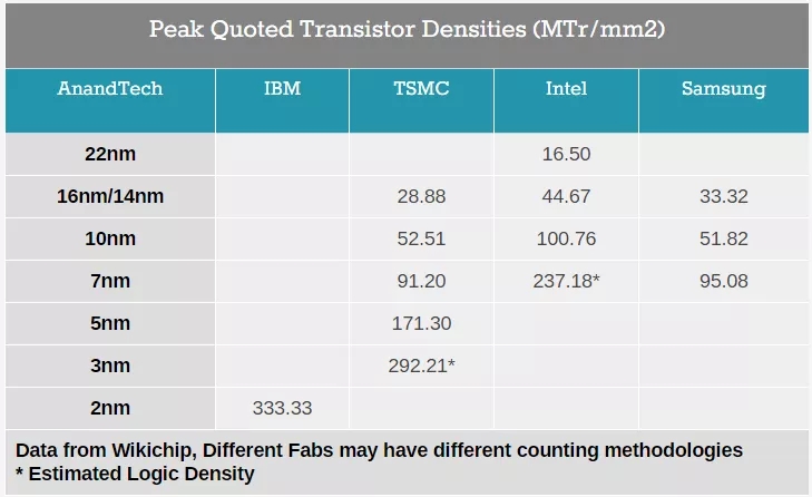 据消息称,IBM首款2nm芯片每平方毫米(MTr/mm² )具有约3.33亿个晶体管。相比之下,台积电最先进的5nm芯片制造,每平方毫米(MTr/mm²)约为1.73亿个晶体管,而三星的5nm芯片则约为127 MTr/mm²。
