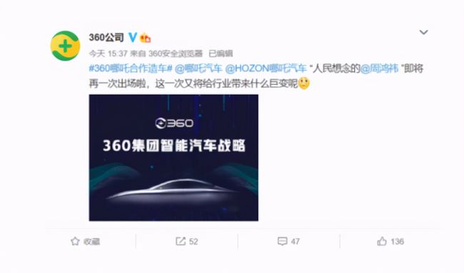 不过近日,有一家厂商无视泡沫,也亲自下场,那就是360。360正式发文称,360携手哪吒汽车,正式进军汽车领域,而360与华为的做法基本是一致的,自己不造车,自己也不为主,主要是把自己技术输出给哪吒汽车,与哪吒汽车一起造好车。