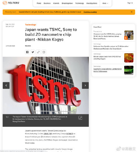 在日本政府的牵头之下,索尼和台积电将合作建厂,索尼将负责土地成本及厂房建造,台积电投资制程,主要生产汽车、机械与家电相关的20纳米至40纳米产品。这将是日本国内首家线宽小于40纳米的工厂。