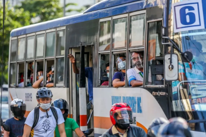 △8月6日,人们在菲律宾奎松市戴口罩和防护面罩出行。新华社发(乌马利摄)