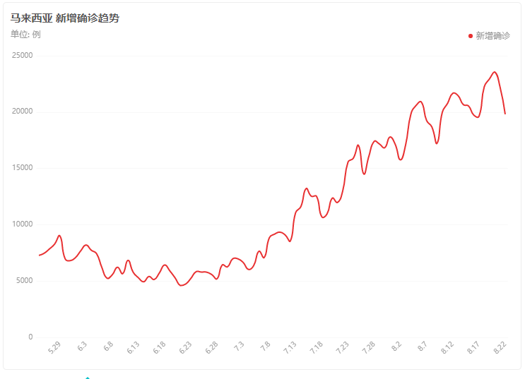 8月22日,马来西亚共有19807宗确诊病例,5宗境外输入病例,19802宗国内确诊病例,共有262255活跃病例,1026人重症治疗,496人需要依靠呼吸器。